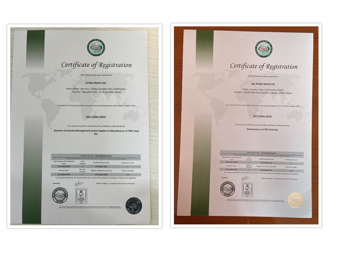 Ambe Steels and Jay Ambe Steels Become the First in Nepal to Achieve ISO 22301:2019 Certification