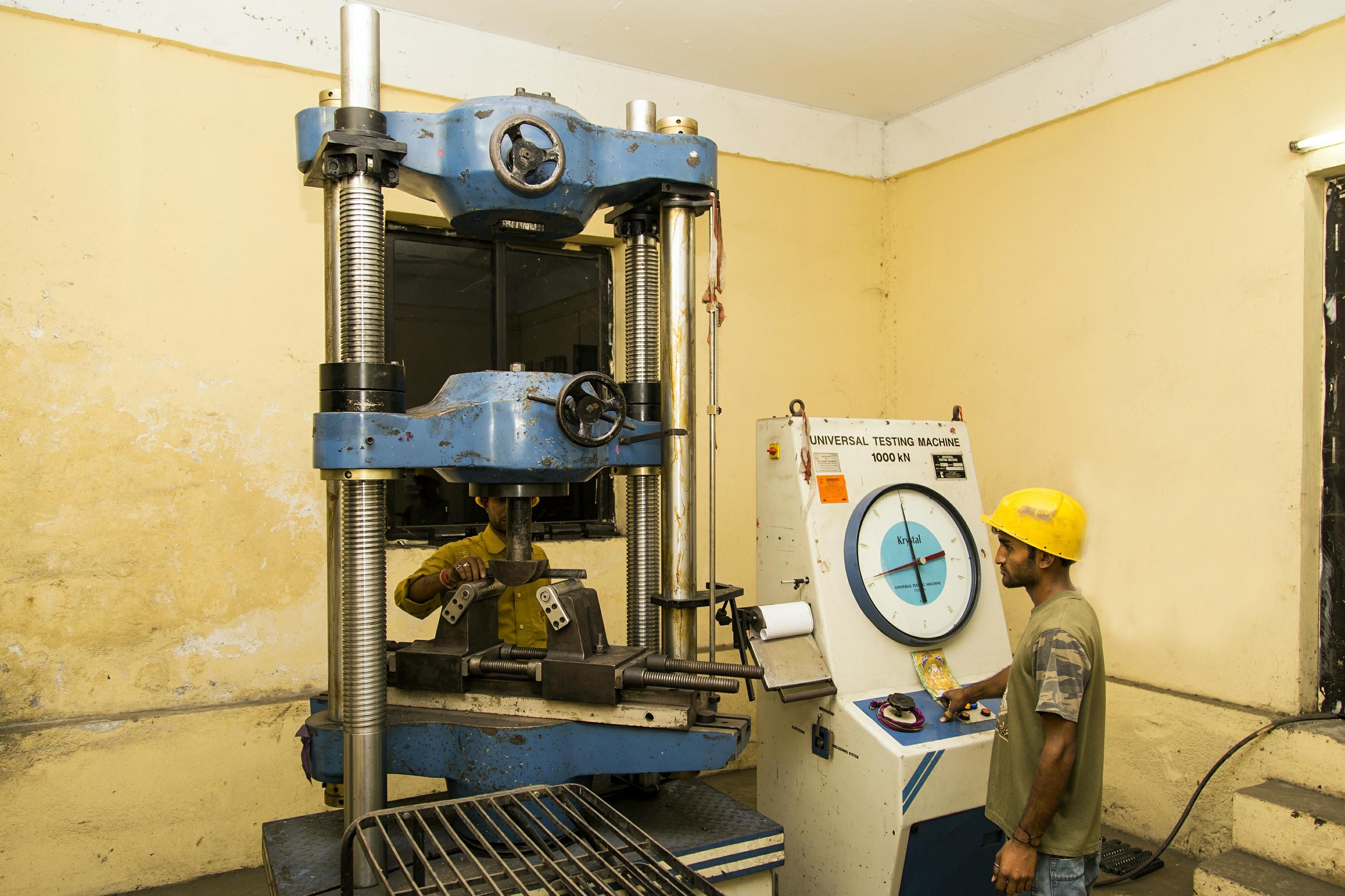 Inspection of billets chemical composition using fully computerized Spectra machine. The hot rolled bar that leaves the final mill stand is rapidly quenched by a special water spray system. This hardens the surface of the bar to a depth optimized for each section through the formation of martensitic rim. The core remains hot and austenitic.